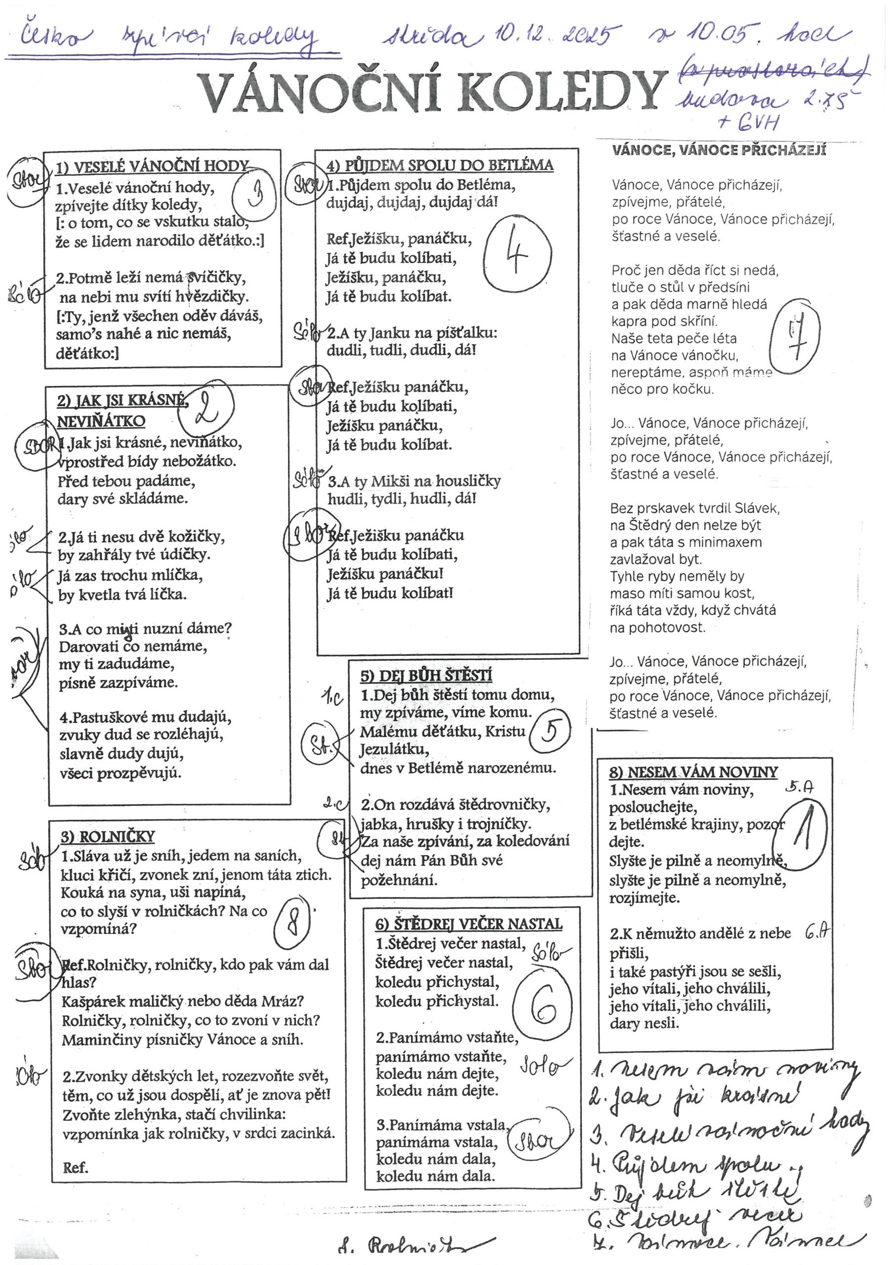 už po patnácté. A po patnácté také na GVH a 2.ZŠ v Hořovicích. Ve středu 10. 12. v 10,00 na schodech v naší budově. A myslím, že si všichni zasloužíme autentický zpěvník, který umožňuje zpěv koled na naší škole rozhodně více let než jen 15…. Zpěvník stáhneš na stránkách deníku nebo starší GVH verze zde.