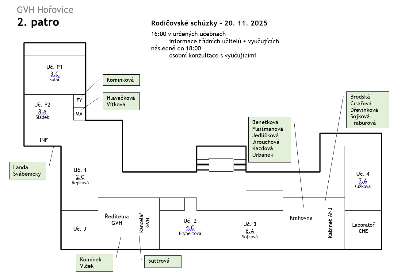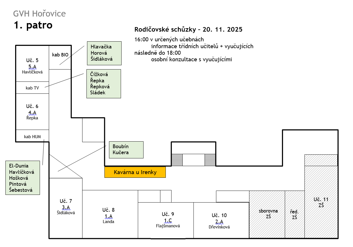 Předem upozorňujeme na nepřítomnost některých vyučujících – Mgr. Brodská, Mgr. Kazdová a Mgr. Urbánek.